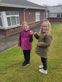 Some of the 3rd Class children have been planting potatoes.